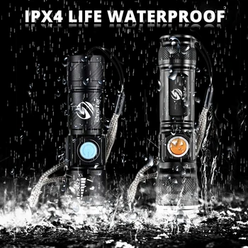 Powerful LED Flashlight With Tail USB Charging Head Zoomable waterproof